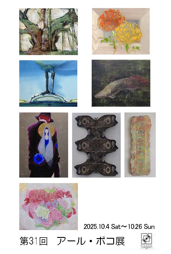 展示会 2025年10月6日 sagan 第31回 アール・ボコ展 2025年10月4日(土)~10月26日(日)11:00-17:00 水・木曜定休 今井大地 大嶽涼太 加納遥 北村武志 武田萌良 降籏一成 宮向井勇 宮向井奈桜